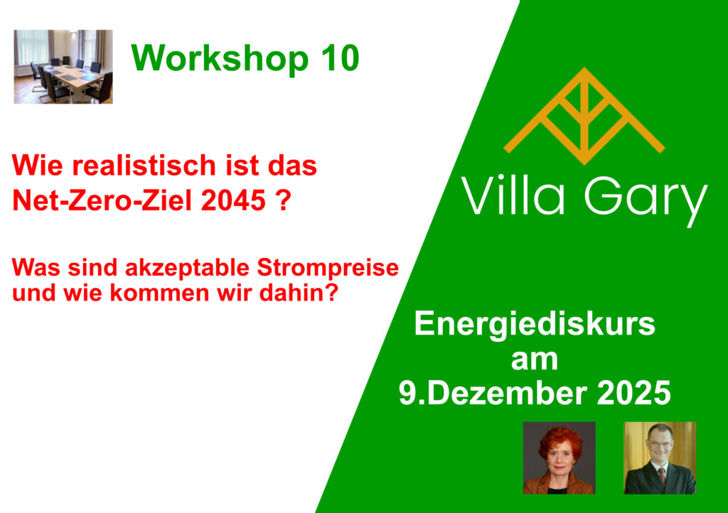Energiediskurs 2025 in der Villa Gary: Wie realistisch ist das Net – Zero – Ziel für 2045 Welche industriepolitischen Folgen hat das Festhalten an dem Net Zero Ziel 2045? Die