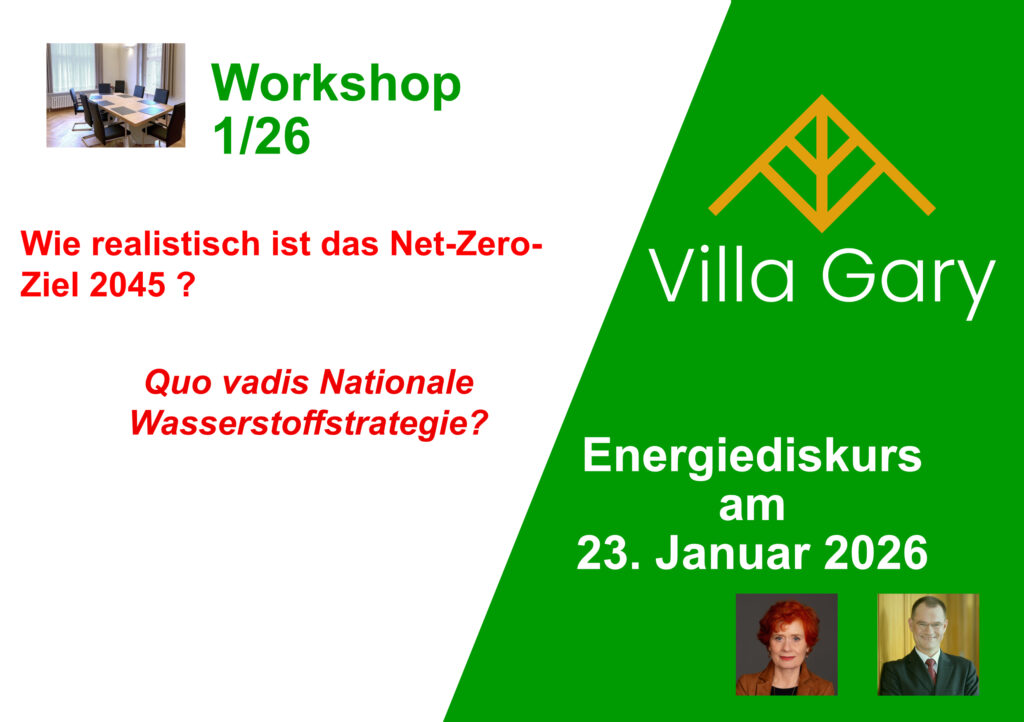 „Energiediskurs 2026 in der Villa Gary: Wie realistisch ist das Net-Zero-Ziel für 2024?“ Quo vadis Nationale Wasserstoffstrategie? Berlin, 23. Januar 2026 – Ende Oktober 2025 erklärte der Präsident des Bundesrechnungshofes,